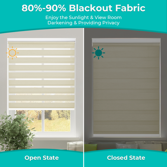 No-Drill Custom Zebra Blinds – Cordless, Dual-Layer, 80% Blackout Roller Shades
