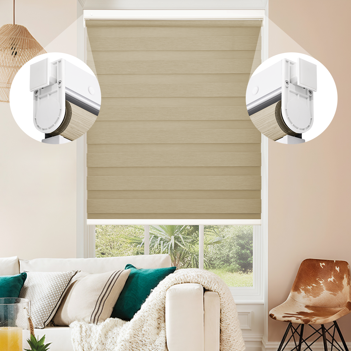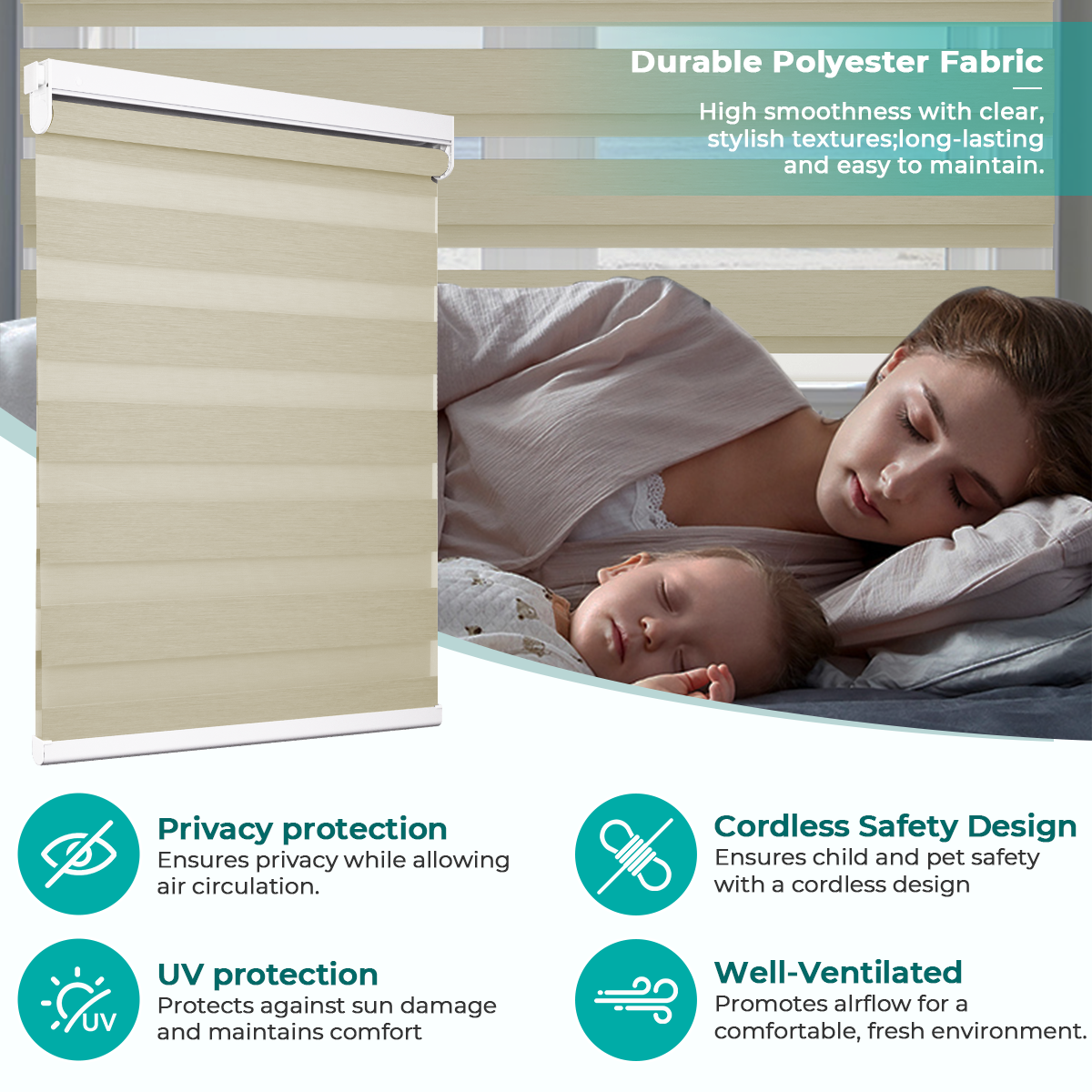 【Premium Linen Texture】Crafted from high-quality linen fabric, these zebra blinds add a touch of natural elegance while softening sunlight for a cozy, refined atmosphere. The woven texture enhances both durability and style.