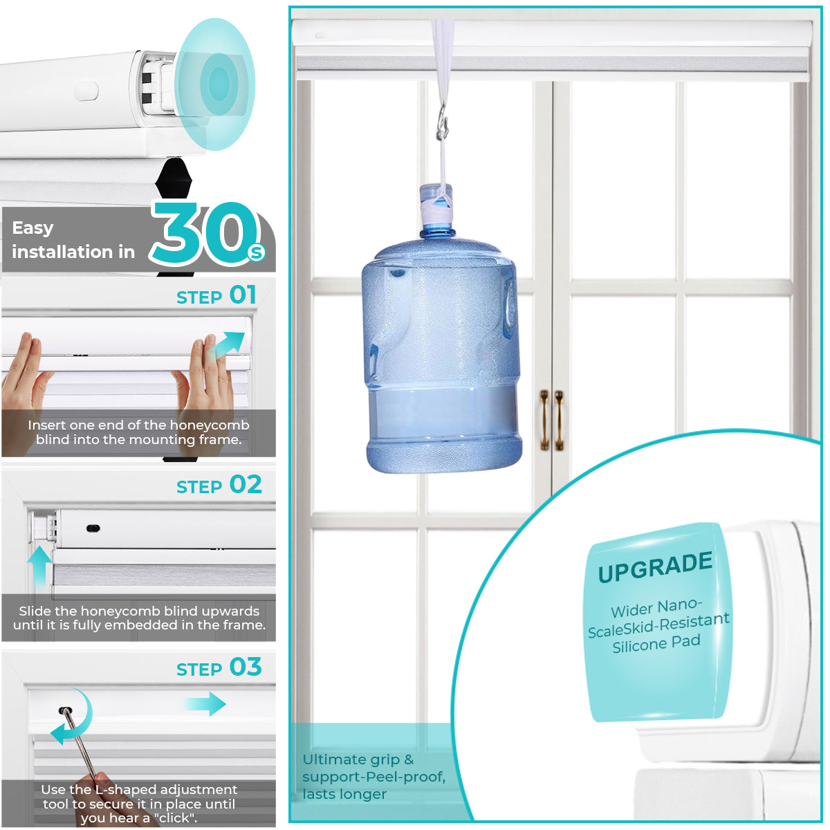 Upgraded Punch-free Honeycomb Blinds Cordless 100% Blackout Fabric
